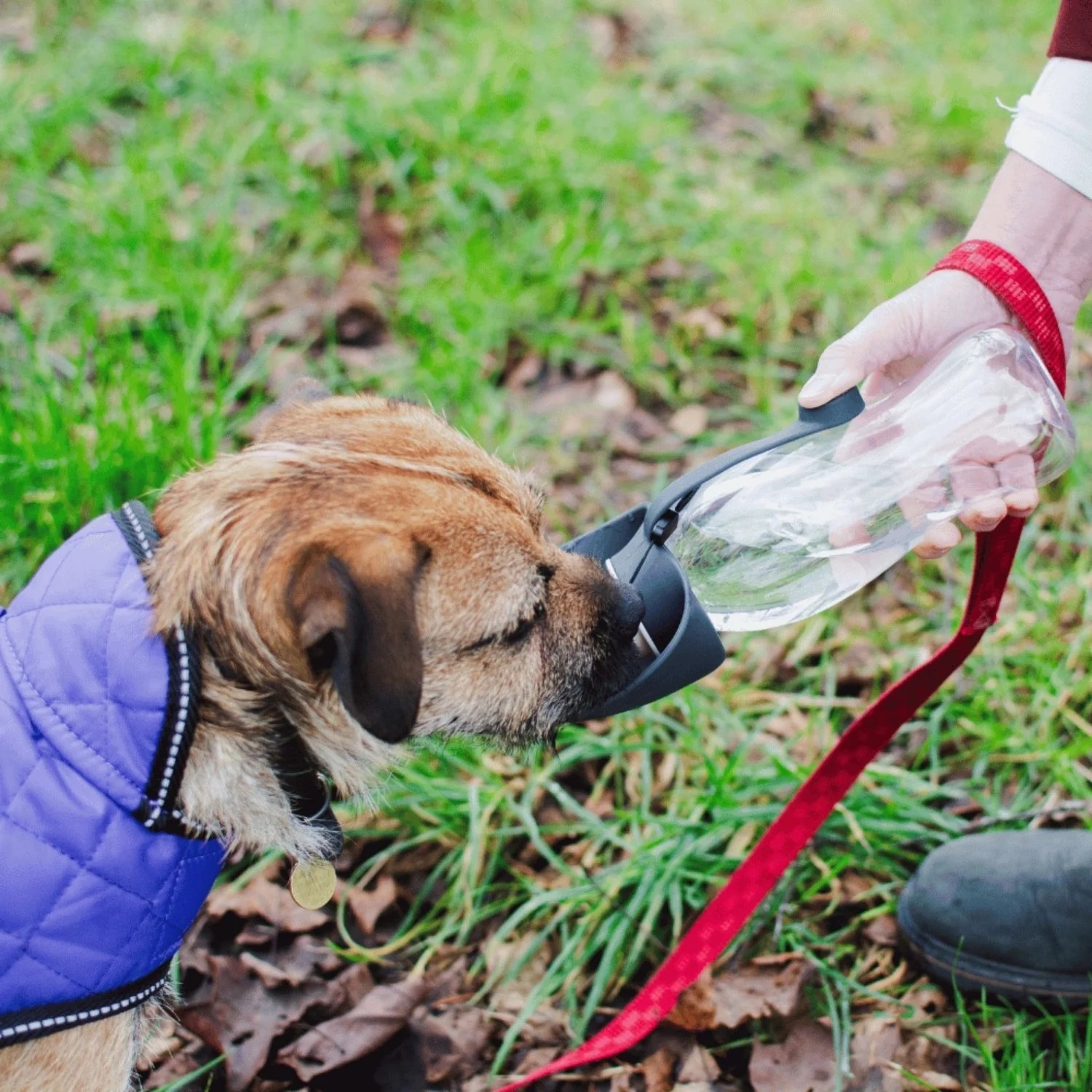 Vatnsflaskan Henry Wag með laufskál er þægileg lausn til að gefa hundinum þínum vatn, sama hvar þið eruð. Vatnsflaskan okkar með laufskál er fullkominn ferðahlutur fyrir alla göngutúra með hundinum. Einfaldlega snúið blaðinu frá hlið flöskunnar undir háls flöskunnar og þá er drykkjarskálin klár fyrir hundinn þinn. Vatnsflaskan rúmar 500 ml og er auðveld í flutningi með bæði lykkju og snúru fyrir auðvelda festingu.