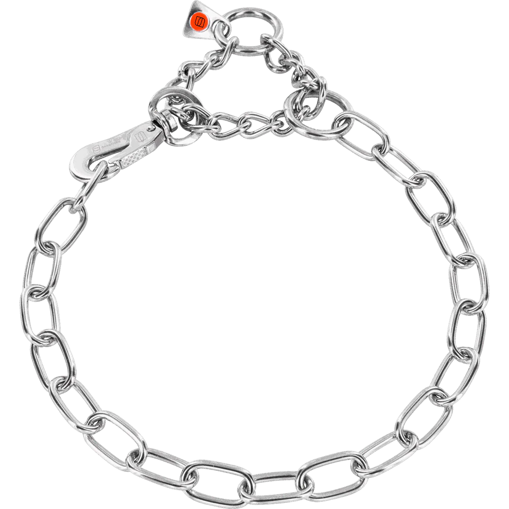 Ryðfríju stálkeðjurnar eru endingarbetri þökk sé notkun á ryðfríu heilu efni – sem gerir þær sjálfbærari, öruggari vegna mikils brotálags og mun auðveldari í umhirðu en hefðbundin hálsól úr nylon eða leðri.